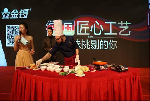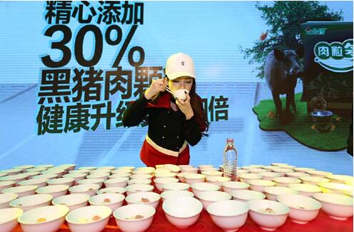 在現(xiàn)場,汪涵更是以無淀粉產(chǎn)品代言人的身份和現(xiàn)場經(jīng)銷商進行了互動,《豬豬俠》人偶豬豬和菲菲也以金鑼哈啰伙伴系列產(chǎn)品代言人的身份進行了萌翻眾人的表演,《畫江湖之不良人》主創(chuàng)團隊則以cosplay的形象出現(xiàn)在舞臺上,帶來了一場如夢似幻的視覺盛宴。而YY當紅大胃王女主播袁瑞彤PK三壯漢,10分鐘吃下70碗金鑼肉粒多拌面更是將現(xiàn)場氣氛推向高潮;外籍大廚阿爾伯特用德斯克制作三道色香味俱全的德式美食,也讓臺下經(jīng)銷商欲罷不能。這些豐富的代言形式,讓在場的經(jīng)銷商全部耳目一新,留下了深刻的品牌印象。也正是在代言人的推動下,短短兩個小時訂貨量便突破了1.15億。